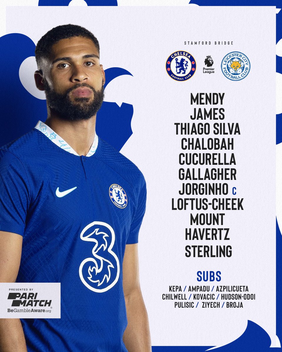 SUBS: Azpi (for Mount, 46'), Kovacic (for Jorginho, 75'), Pulisic (for Sterling, 75'), Chilwell (for Cucurella, 90+2')